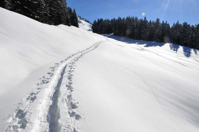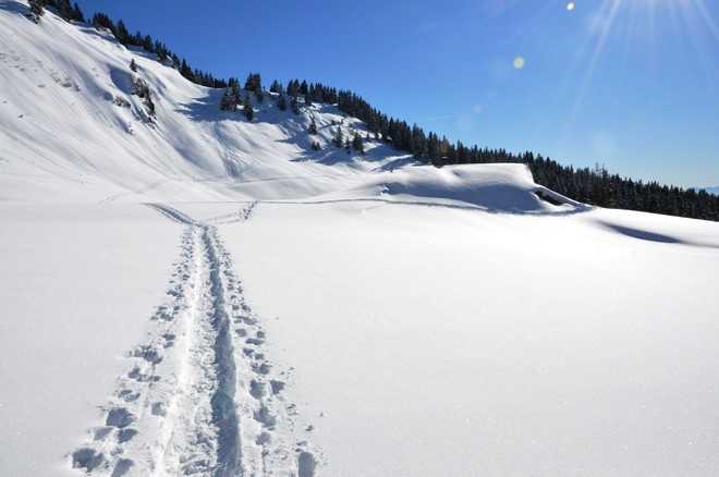 Le Haut du Pré est le but de cette randonnée en raquettes. Il faut, hélas, maintenant faire le chemin en sens inverse.