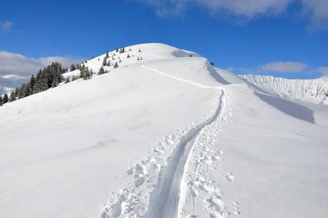 Au col vers le lac, à l'altitude 1869 m. Jeux de lumières sur la neige.