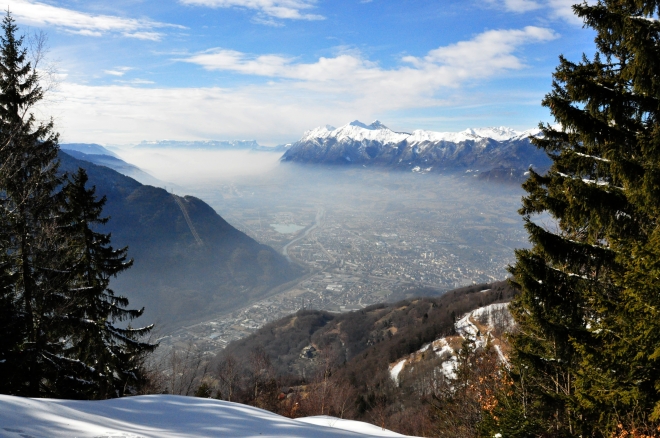 Mais souvent une trouée entre les arbres permet de découvrir de spectaculaires vues sur la Combe de Savoie,...