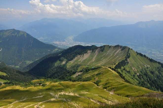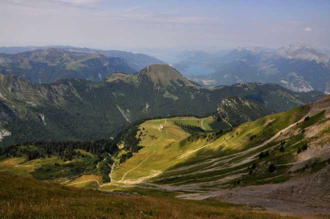 Du sommet de la Pointe de Chaurionde, au Nord-Ouest, en direction du lac d'Annecy et de la Pointe de Velan.