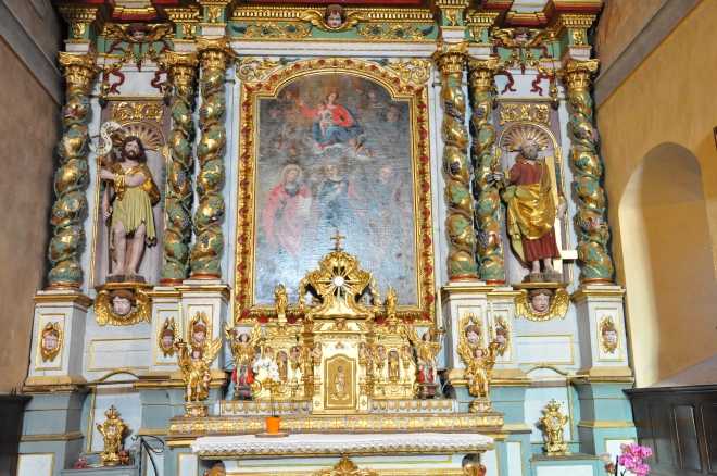 Admirez les voûtes polychromes, le grand retable et la très belle Pietà en bois.