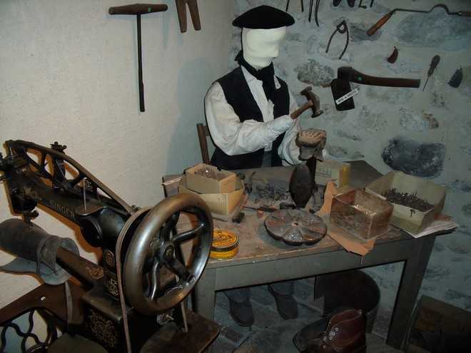 Différents métiers d'antan sont mis en scène, avec leurs outils et ustensiles. Ici le cordonnier.