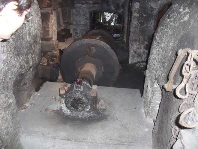 La turbine hydraulique qui actionne les marteaux.